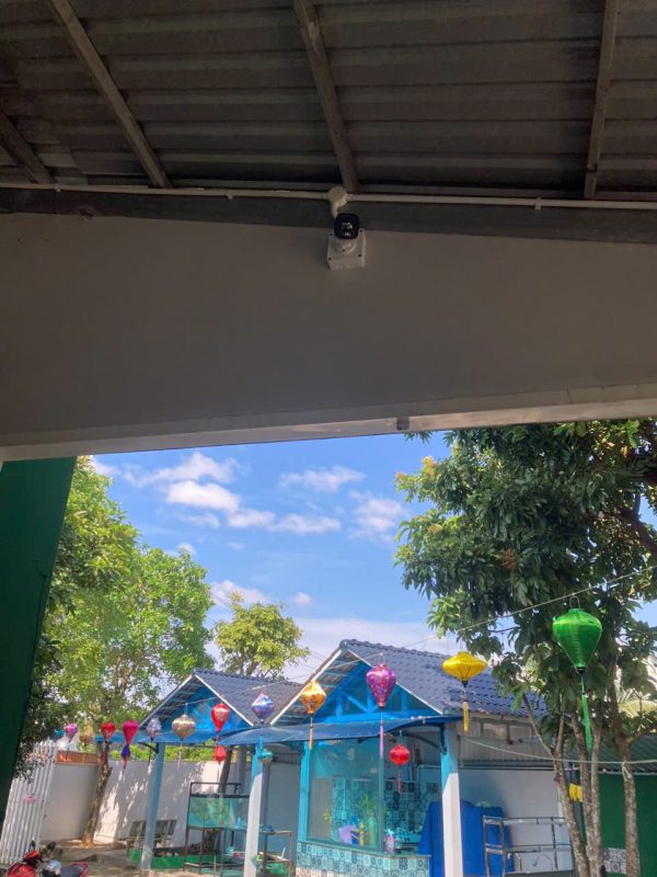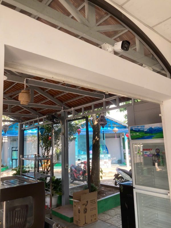 Giải pháp giúp chủ quán quan sát toàn bộ khuôn viên 24/7, tiết kiệm điện và tăng độ sáng an ninh ban đêm.